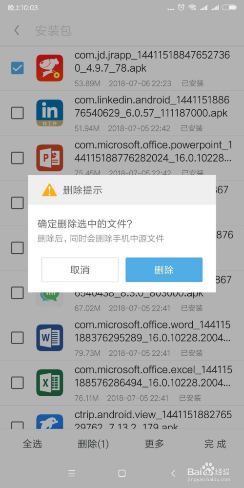 第四,清理安装文件,长按要清理的文件,文件前面会呈现方框,再次点选可以选中,也可以全数选中。按照本身的需求选择。