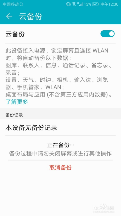 然后要期待备份,这个期待时候有点长哦,一般备份都是备份手机通话记实、通信录、照片、信息等等。