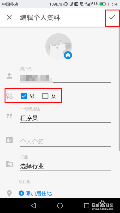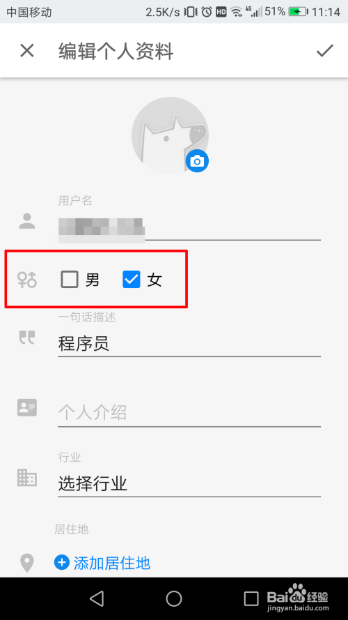 然后我们发现,在第二栏就有一个性此外选择了,大师选择好本身的性别。