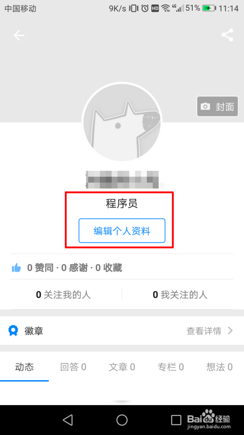 这里就会有一个‘编纂小我资料’的选项了,点击它。