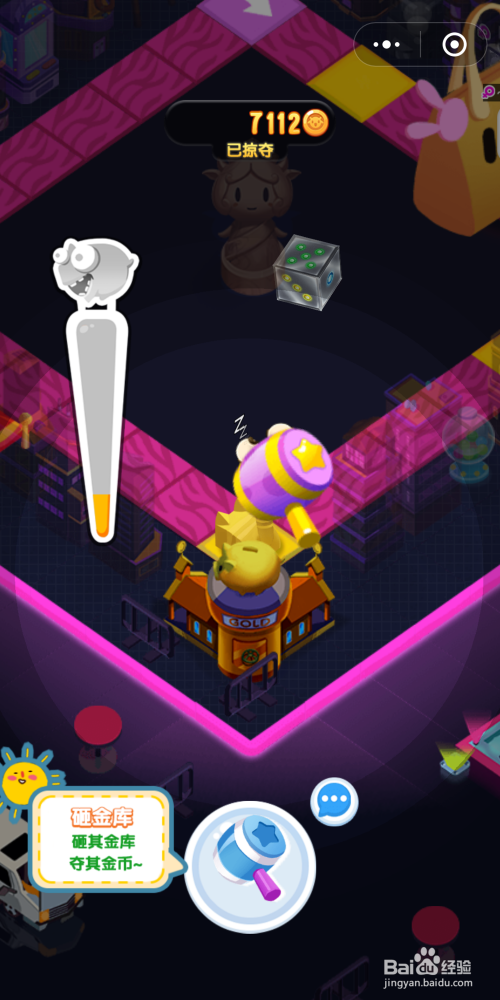 若是跳到带有锤子的方框上面的话,会跳出一个图示的页面,按照提醒操作玩家也可以用锤子砸出年夜量的金币。