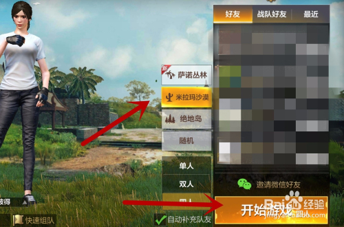 首先我们进入到绝地求生三军出击游戏傍边,在里面选择一个游戏模式进入,如图所示。