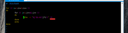 下面就是 操练利用 ‘\t’的例子,输出 九九乘法表 ,若是以 空格 距离,就会在 10 数呈现时,距离不整洁; tab 可以很好的解决;所以带上 ‘\t’就行了;