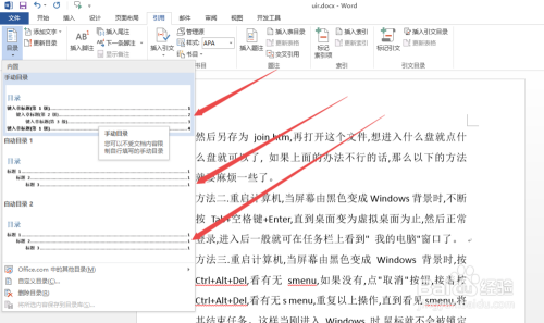 然后在呈现的菜单选项中按照需要选择,选择好之后,点击它就可以插入目次了。