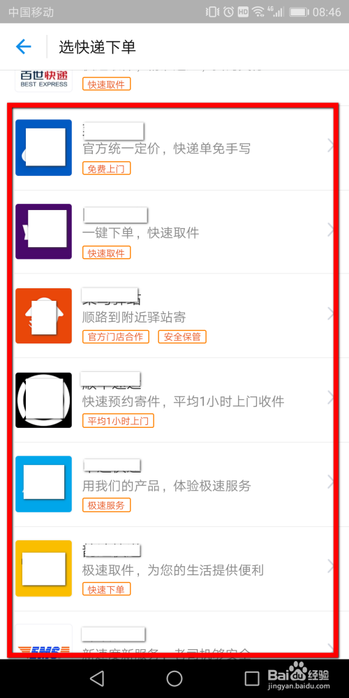 这时会在列表中看到良多家快递公司,点击选择此中一家。