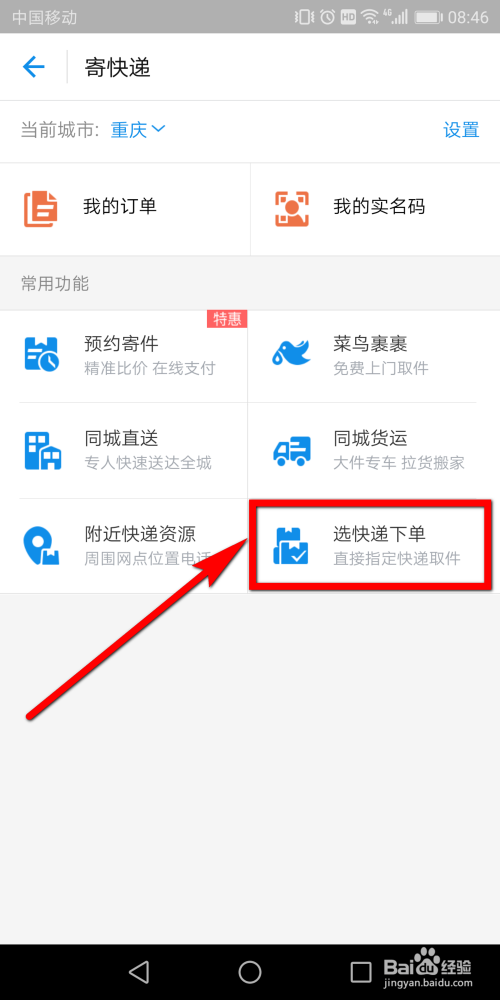 进入到寄快递页面今后,在常用功能组下方点击【选快递下单】选项。