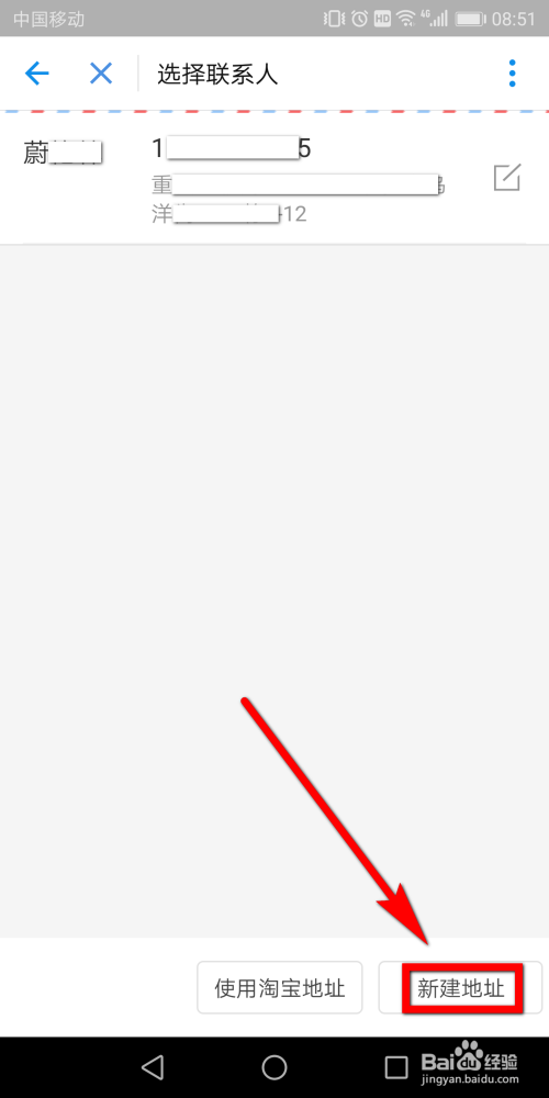 点击地址薄今后,会看到如许的页面,在页面最底部位置点击【利用淘宝地址】,若是淘宝地址中没有你当前地址的话,也可以点击【新建地址】。