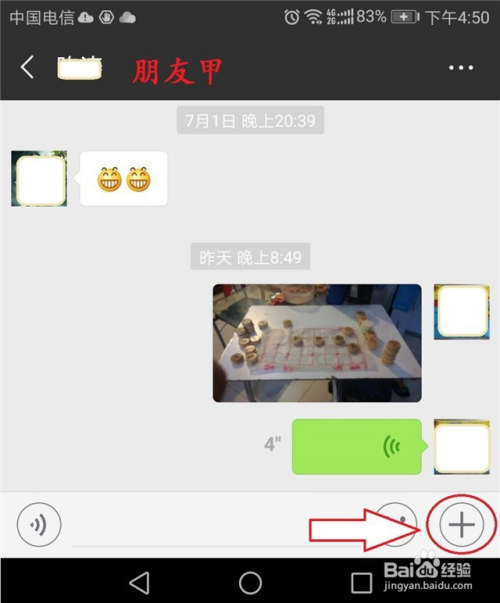 如下图所示,打开与“伴侣甲”聊天的界面,再点击最右下角的“+”号。
