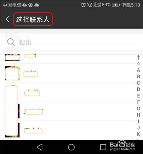 这时,软件调转到联系人列表的界面,我们选中“伴侣甲”需要的“伴侣乙”(联系体例)。