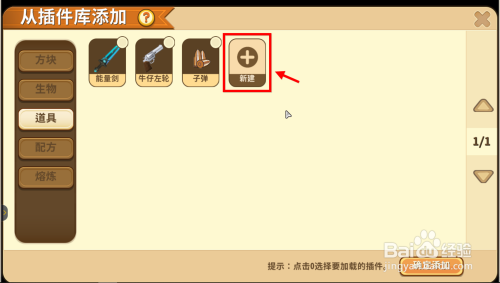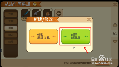 如下图的两个选项都可以点,一个是将原有功能点窜为新功能,一个是直接新建新的道具,小编比力保举第二种。鼠标点击建立新道具,转入新页面。