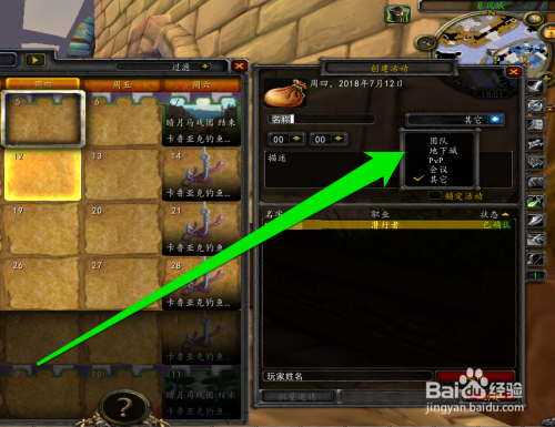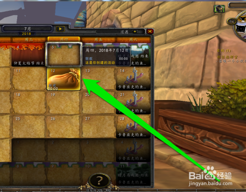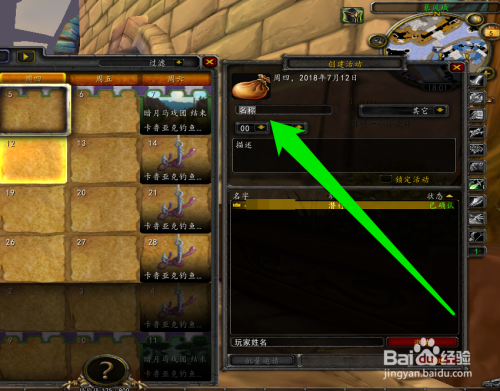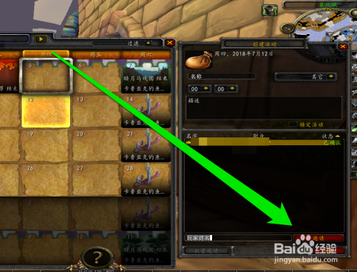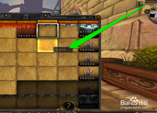 在魔兽世界的游戏画面中的小地图旁边有一个日历的图标,点击这个图标,可以在日历中,建立脚色本身的活动信息。