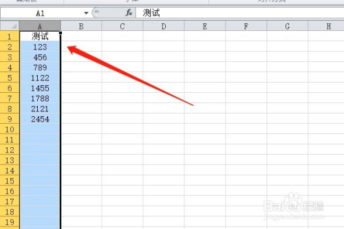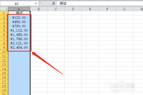 第一步:我们首先呢,需要在excel新建一些测试数据test,然后我们可以看到这些数字只不外是简单的数字,并没有呈现人平易近币字符。
