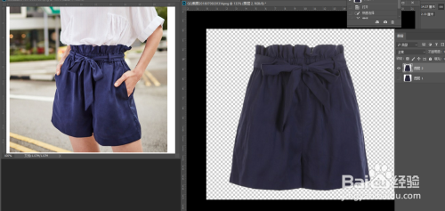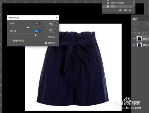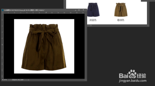 再举个例子,这个产物有2个颜色,用魔棒东西,选择白色的布景,然后ctrl+shfit+i 反选,crtl+j 复制出这个。可以看到这个产物实拍图,比模特图灰暗了不少。我们需要给它美化一下。