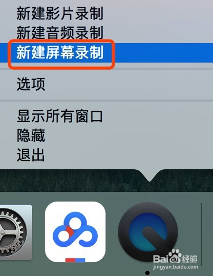 打开录屏软件Quicktime Player,右键选择有屏幕录制、音频录制、影片录制。