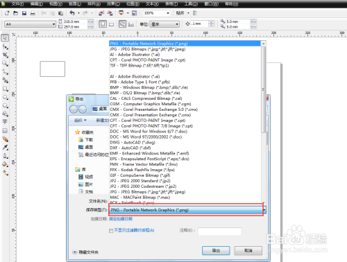 弹出导出图片对话框,点击选择png类型的图片,而且给图片定名,选择导出路径,如图