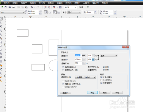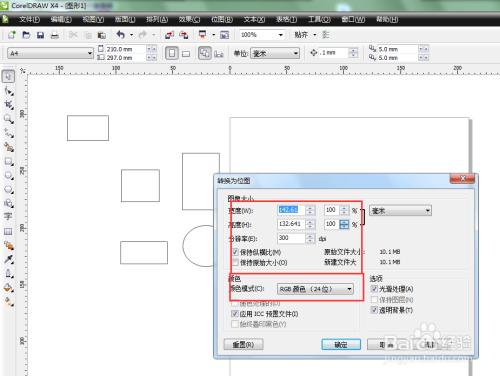 确定png类型及导出路径今后点击确定,如图弹出转为位图对话框。