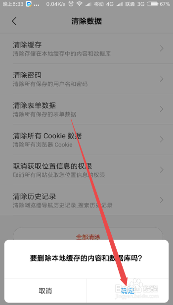 点击它,在弹出的扣问窗口中点击 确定 按钮,如许就可以断根手机浏览器的缓存了。