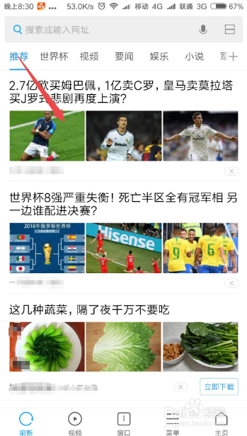 然后点击当前页面下面的菜单选项。