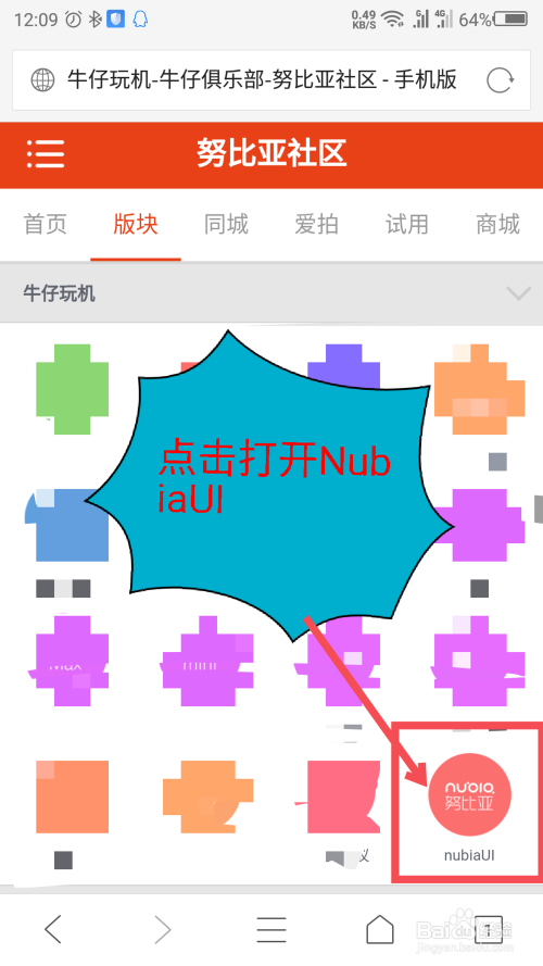 在版块内容里面,找到NubiaUI选项,点击打开。