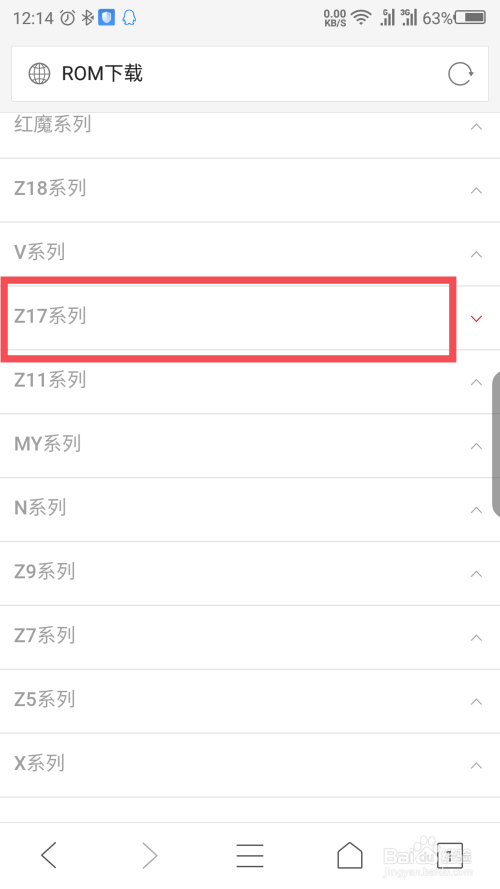 按挨次依次点击ROM下载选项-Z17系列-Z17。