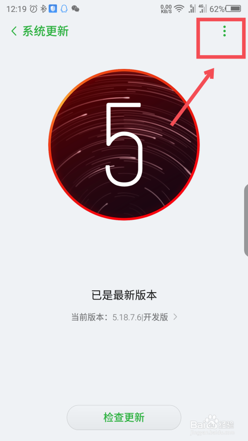 在系统更新界面点击左上角的三个点