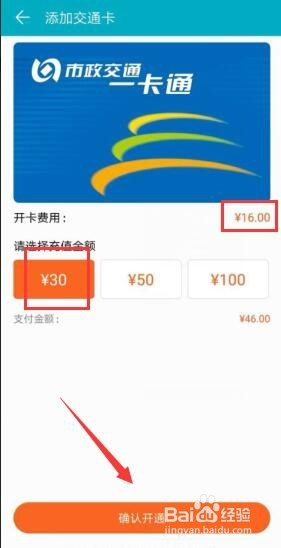接着即可进入充值开卡界面,当前上海不需卡费,其他城市需要,除卡费外,还要进行额度充值,才能开通当作功,按照需冲要入,额度可直接利用,有用期3年。