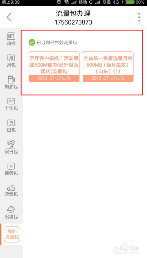 之后在我的选项界面点击右边的我的流量包选项并进入。