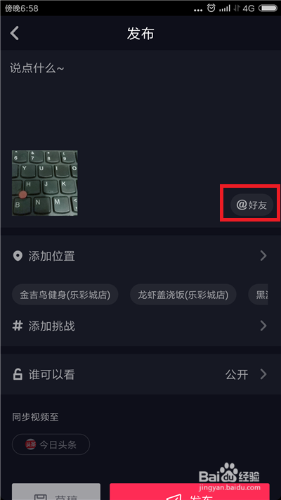 选好后返回到视频发布界面,可以看到在上方我们已经@了别人,点击下方的【发布】即可。