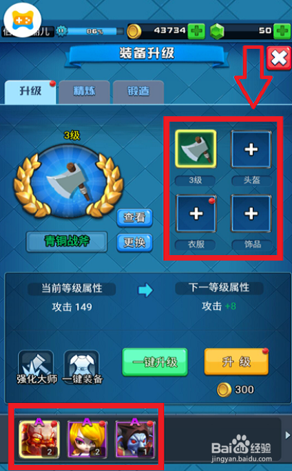 继而从底处挑定要升的人物栏,轻触后在逐个‘+’框按起,在这将衣盔和持物都进而添上。