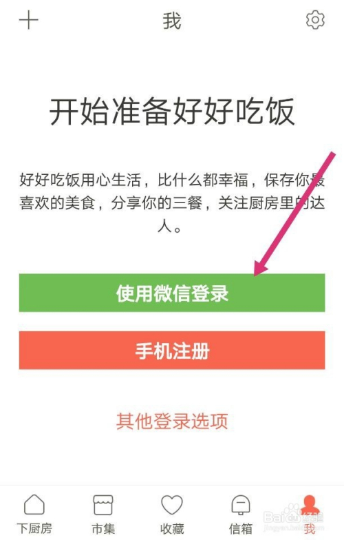 进入下厨房手机APP今后,先点击右下端我的进入。