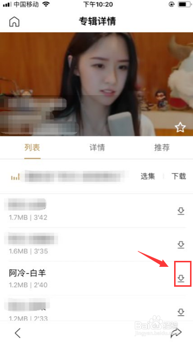 点击歌曲后面的【下载按钮】。下载后【下载按钮】会消逝。