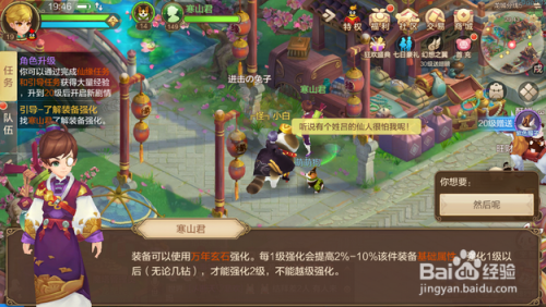 第一步,当然是将脚色晋升至19级,然后就会主动接到【装备强化】的使命,如下图所示,可以按照系统提醒和指导直接到到使命NPC【寒老虎】领会相关环境。要强扮装备首先需要【万年玄石】才行。