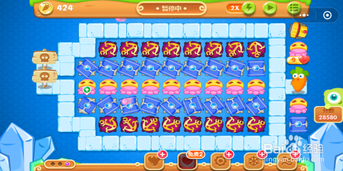 然后继续进犯左边的雪糕,雪糕清理失落今后建造第4个章鱼,依次类推,道路中心这一行全数都建造当作章鱼。