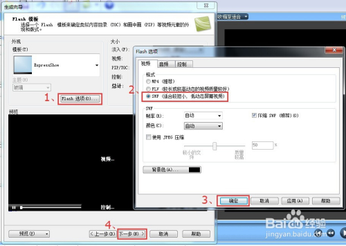 4、点击 Flash选项,选择SWF,点击确定,下一步;