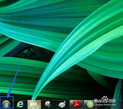 首先单击桌面上的WIN按钮图标,本教程该键是在桌面左下角,如图所示。