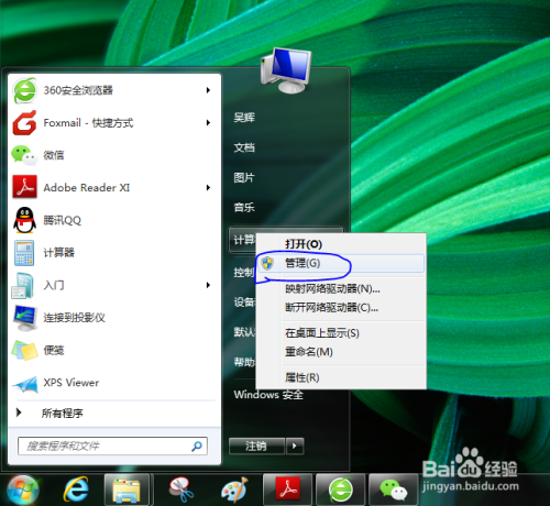 鼠标右键单击计较机,在弹出的菜单中选择办理号令。