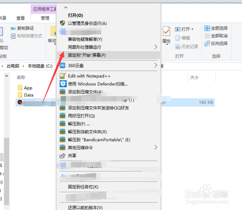 5. 选中步调3中的exe文件,在鼠标右键菜单中选择【固定到“开始菜单 ”】