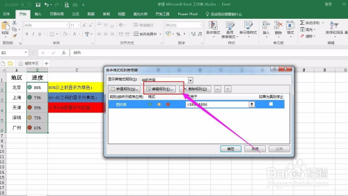 在办理法则界面选中之前设置的前提格局并进行编纂。此处将朋分点改当作80%和60%。