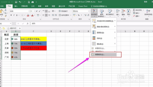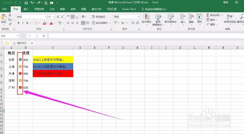 以下图为例,我们需要将分歧地域按照销量进行区分,在进度数据进步行颜色标注。