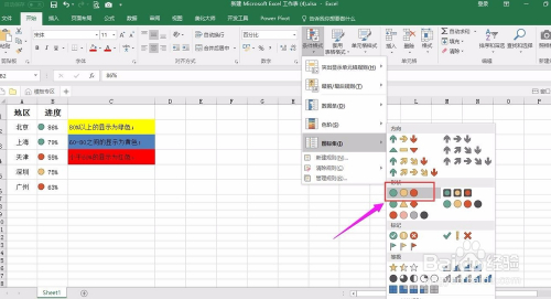 在该类面前目今依次选择前提格局、图标集、红绿灯图标。