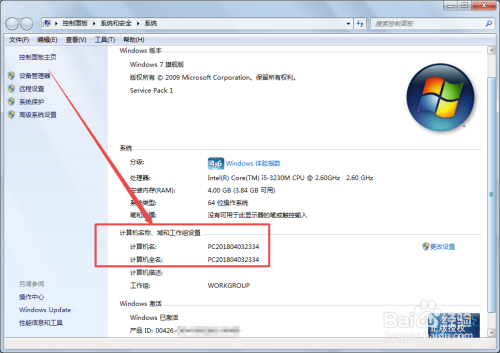 然后在打开的系统页面中,在计较机名称、域和工作组设置选项下面,就可以看到计较机名称了。