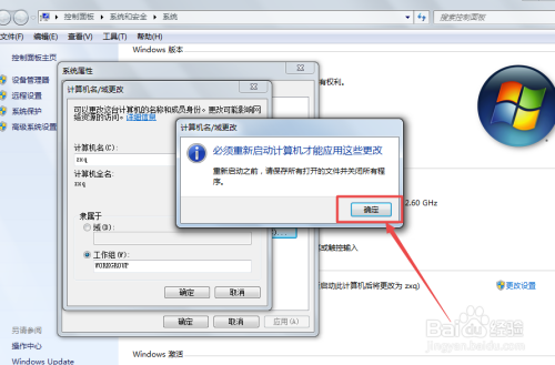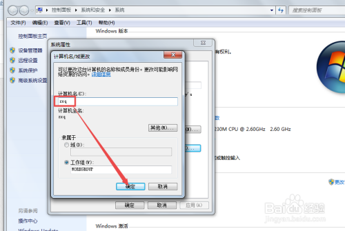 然后在打开的页面中按照需要输入计较机名称,输入完当作之后,点击确定按钮。