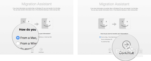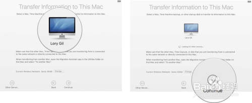 1、迁徙助手将寻找一个来历。选择旧的Mac(若是您利用的是Time Machine备份,请选择Time Machine硬盘)。