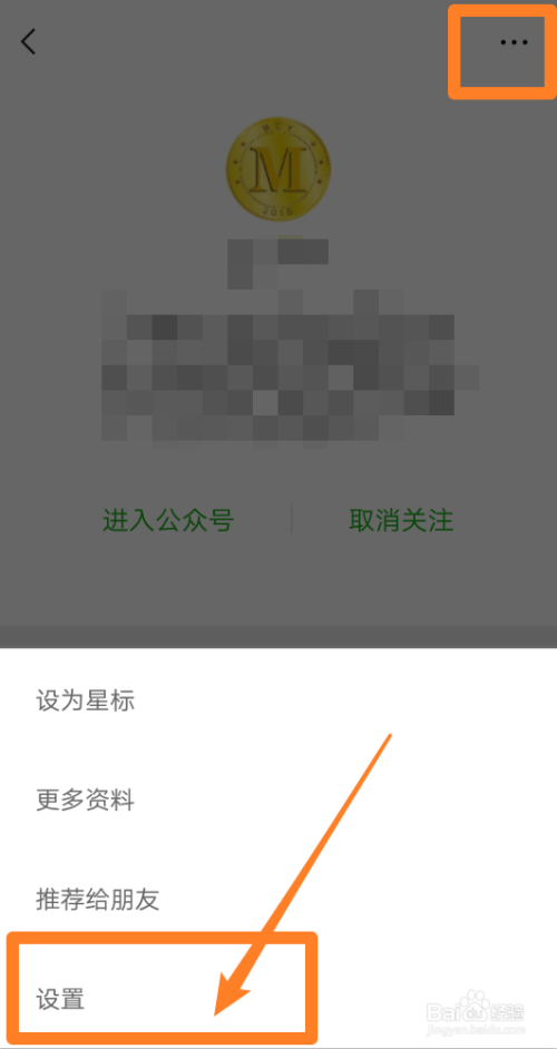 进入到公家号介绍,点击右上角【三点击】—【设置】