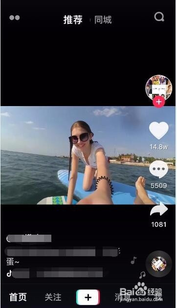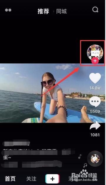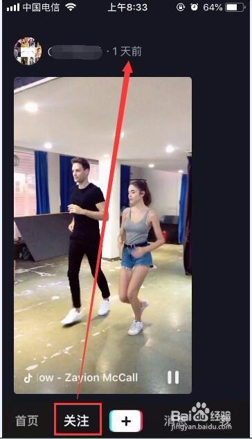 首先我们要想查看抖音某个短视频的发布时候,我们必需要先存眷这个短视频的作者,也就是点击短视频右上角的头像加号存眷。