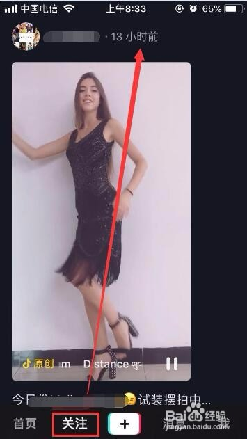 存眷抖音作者后,我们点击抖音界面下方的存眷菜单,进入我们存眷的作者的具体的短视频发布信息页面。
