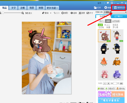 当编纂竣事时,我们点击编纂窗口右上角的保留与分享选项对图片进行保留;