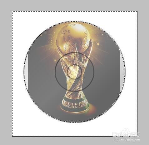 点击选择菜单——》反选。然后按删除键Delete,将圆形选区以外的图片部门删除。如图所示。