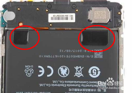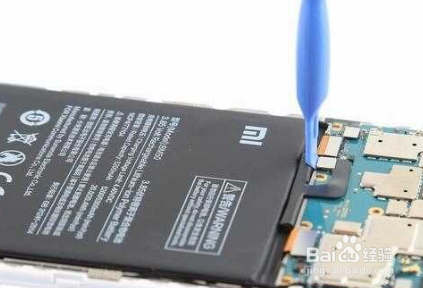 手机的电池下方可以看到是有双面胶粘贴。用镊子卷出电池的双面胶。清理清洁之后就可以很轻松的拿起电池了。