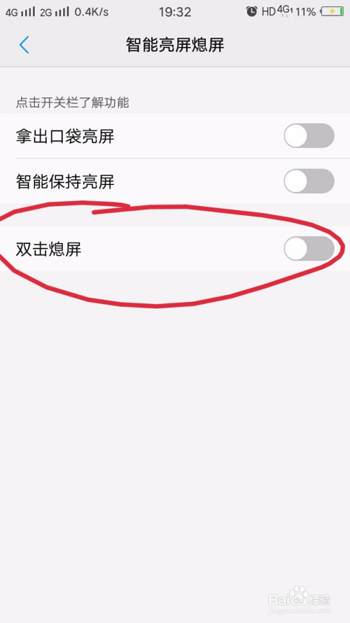 然后在智能体感中,找到‘智能亮屏熄屏’,我们把里面的双击熄屏打开即可。